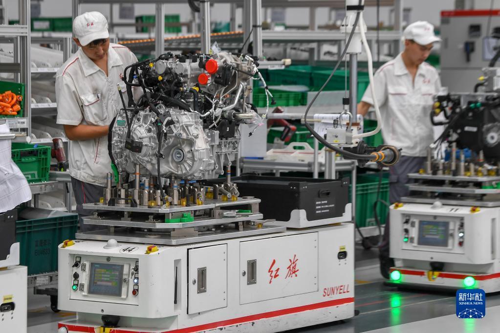 在位于吉林長春的一汽紅旗繁榮工廠總來吧。”裝台北汽車材料汽車空氣芯間內,AGV搬運機器人將車輛零部件運VW零件輸到工位上(7月6日攝)。
